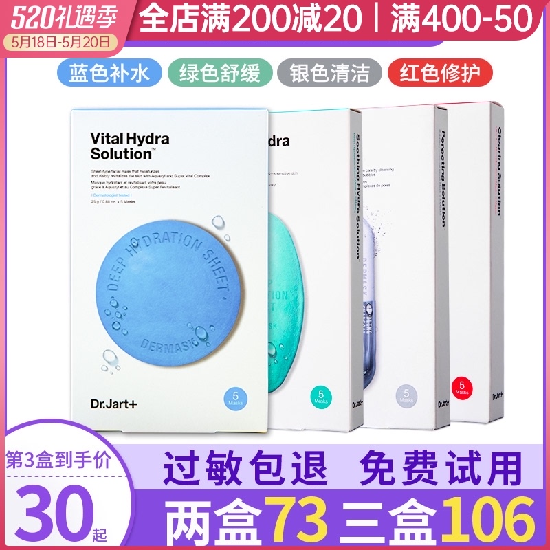 Dr.Jart+蒂佳婷补水药丸面膜保湿清洁蓝色/绿色/银色3盒/15片韩国