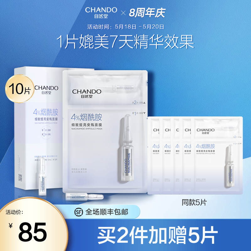 自然堂安瓶面膜10片 烟酰胺细致提亮 补水保湿海藻修护面膜女官网