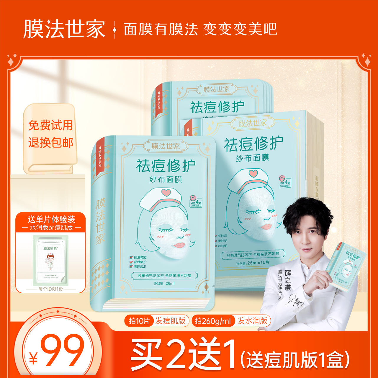 膜法世家纱布面膜10片补水保湿修护水杨酸淡痘印正品女男魔法世家