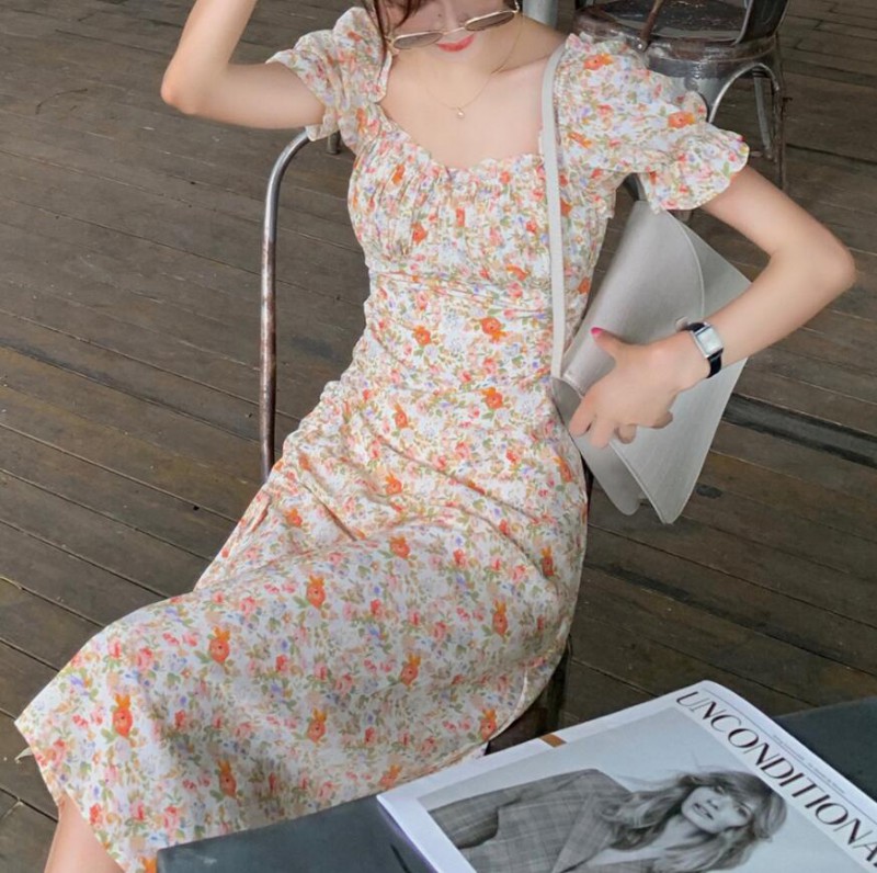 黄色的碎花裙很多妹子可能不太敢挑战,但其实大家要弄清楚一点,就是显黑的那个是荧光黄,而普通的鹅黄色或者是芒果黄都是非常显白的,而且在夏季穿这种亮色的裙子也会显得整个人气色都好一些,尤其是在阳光下面,看起来十分的耀眼。