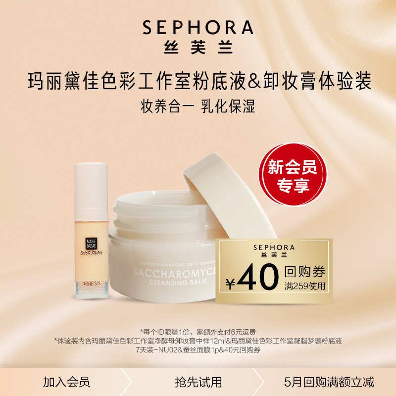 【新会员专享】玛丽黛佳卸妆膏+粉底液体验享259-40回购券