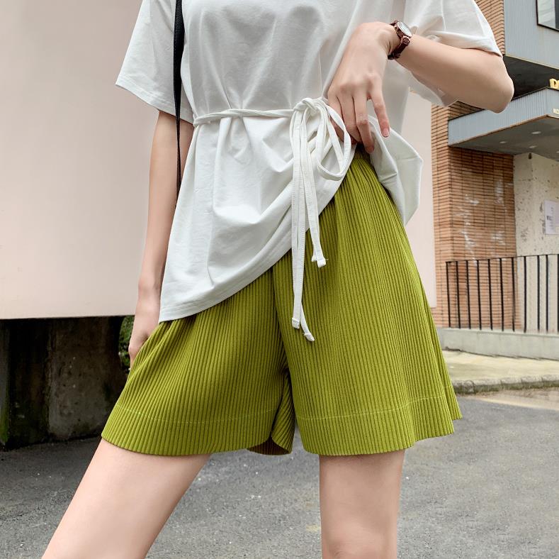 绿色短裤可以搭配小白鞋,或者是白色的帆布鞋,再穿一个白色中筒的袜子是非常显腿长的,还可以搭配白色的长靴,或者是黑白花纹的鞋子,高帮的aj都是非常不错的穿搭。