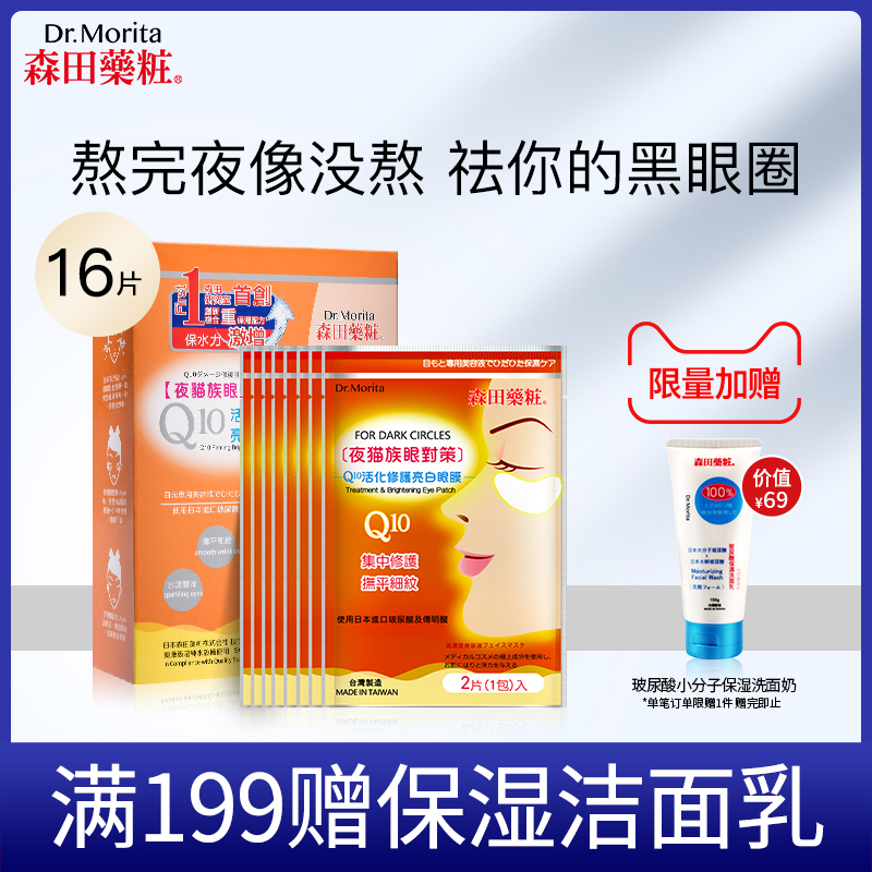 森田药妆Q10三重活化修护眼膜贴淡化细纹黑眼圈紧致眼袋疲劳16片