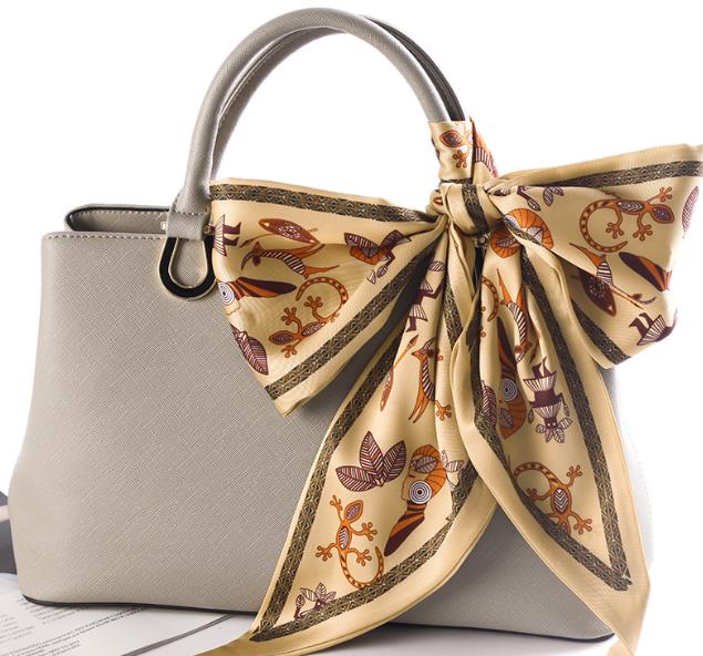 也可以将长的丝巾缠绕在包包上面,与肩带或链子完美融入,在颜色上面大家也要注意呀,其实丝巾搭配有很多办法大家多尝试,说不定有不一样的风格。