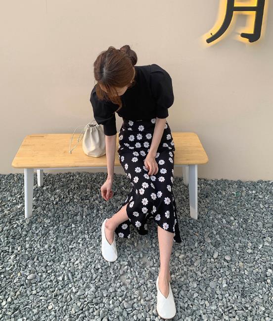 春天碎花裙穿搭:黑色西装外套搭配长款碎花裙,知性优雅又不失甜美的感觉,拉长身材比例,显瘦又显高,太适合参加婚礼或者闺蜜聚会了。