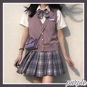 常春藤花样和线条有规律地织成的U领背心。前肩的黑色补丁是蛮有特点的装饰。