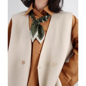 常见系法三:如上图,许多三角巾,或者一般的丝巾都是可以采用上图的系法的。但是一定是长度稍短的类型,过长就不适合了。将丝巾对折到合适宽度,然后放在脖子上,一端稍长不平均,将稍长一端缠绕一圈,放在胸前。与之前较短一端交叉打结一次,然后将尾端理好,显得自然,如上图所示。满满的时尚感,方法也简单哦。