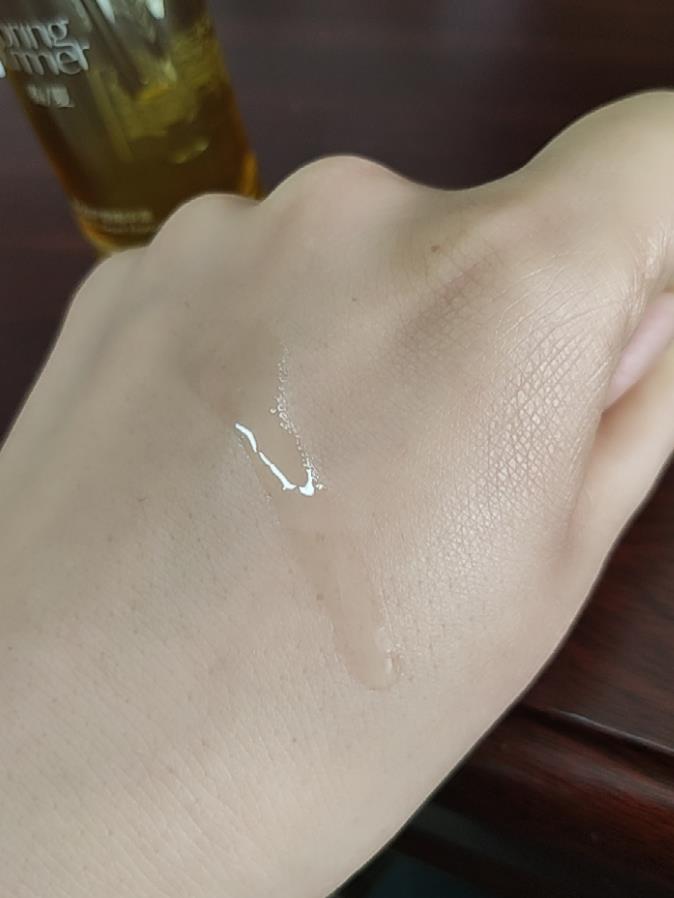 先说质地,比较清透,流动性挺高,我最爱的是气味,特别清新好闻,不刺鼻,不油腻。对我这混油皮来说偏油了,但和我的其他精华液掺一起涂上,脸挺滋润的,只掺一两滴就好。