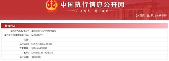 据中国执行信息公开网消息,4月26日,上海猎豹文化传媒有限公司新增一条被执行人信息,案号(2021)京0101执4503号,执行标的33000000元,执行法院为北京市东城区人民法院。