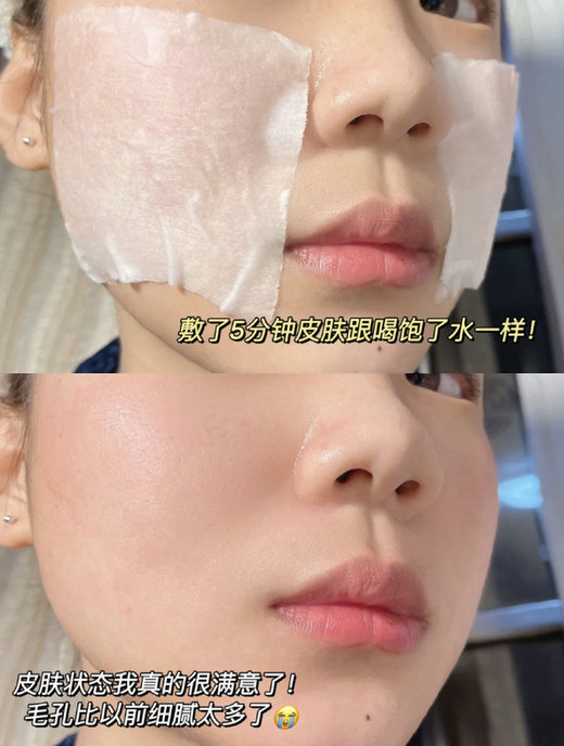 用了一段时间,明显感觉皮肤不干燥了,白皙又透亮,长期湿敷感觉毛孔都渐渐小了,夏天有这一瓶就足够啦~