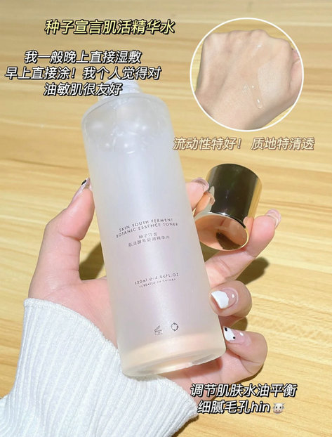 又到了挑选护肤品的季节啦因为大干皮,之前冬天入手的一款水天气热了,用起来好油腻第二天早上起来还闷痘,果断迅速换了。他挑了很多,最终入手了被朋友安利的这款种子宣言肌活精华水。