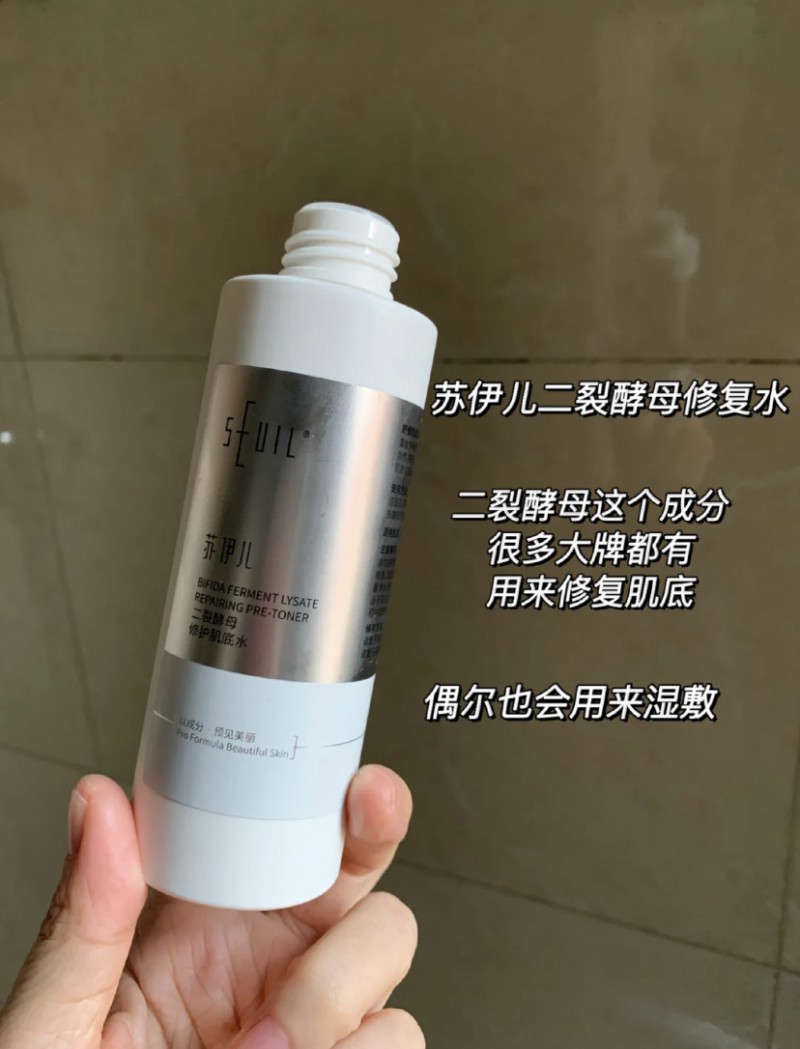 作为一个混合皮,熬夜一猛,额头下巴就爆痘,不会自己修复,脸上也油腻腻的,感觉皮肤好像生病了,所以我换了这套能修复熬夜肌的水乳,我之前听都没听说过这套苏伊儿双重益生菌水乳,要不是我闺蜜也在用,我也会跟你们一样,一听到国货,还是没见过的国货都会担心这是不是三wu产品啊!