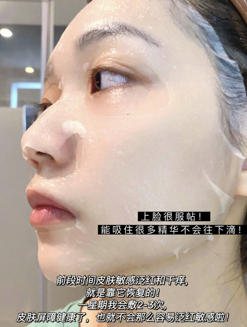 一开始觉得平平无奇,里面的精华确实好吸收。但是敷个2-3次,脸上的泛红就没了,补水也是好,往我脸上哐哐灌水,闹脾气的小红脸一下子就被镇住了,镇定舒缓问题肌!