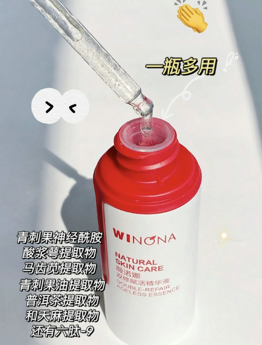 它算是我用过的抗老精华里修护提亮效果比较好,又比较温和的亲测敏感肌可以安心用,一点都不刺激!毕竟是专注敏感肌护理的。薇诺娜从成分配方上来说,一如既往让人放心。