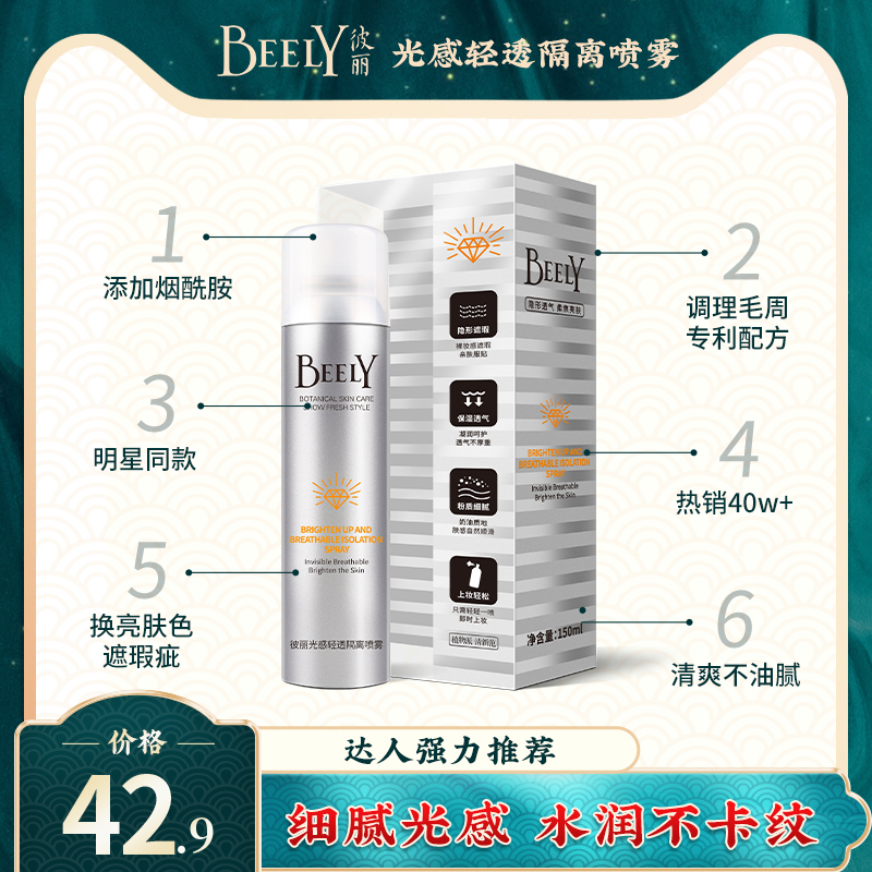 总结一下,这款beely小泡沫防晒隔离喷雾很不错,既防晒又隔离,美白提亮效果很好,自然美白肌肤,不假白,喷雾很细腻,使用方便,几个也不贵,夏季可以全身喷,都不心疼,推荐入手!