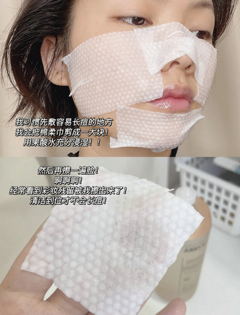 完子心选家的果酸水,清洁+收缩毛孔的能力太牛了,温和又完全不会刺痛。我一般会选择在容易长痘长闭囗的地方湿敷,全脸敷个10分钟左右,再用棉片轻轻的擦一遍,做二次清洁,毛孔脏东西真的被带出来了,皮肤清透了不少。
