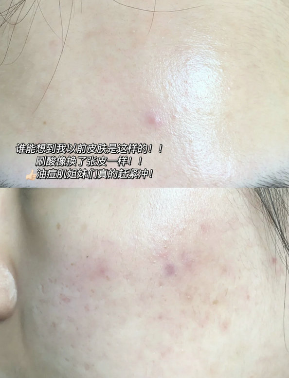 我是常年大油田,痘痘肌,关键还敏感,痘痘反反复复,用过很多护肤品,也在小红书上找了很多祛痘的方法,效果都微乎其微,甚至有的还过敏,看到这个新品果酸后就在想,反正试了那么多产品了,也不在乎多一个。收到货后就开始用,我惊了!