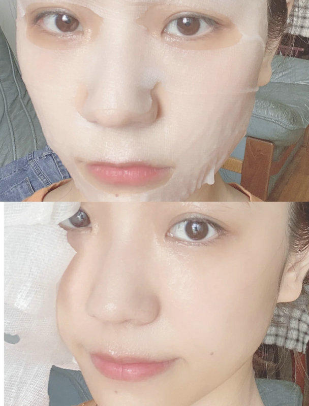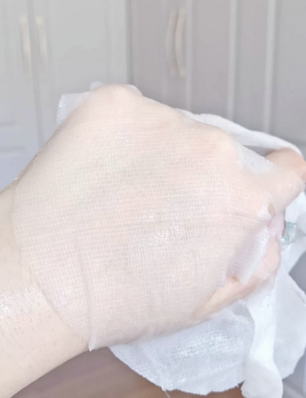 膜布是纤维纱布滴,上脸立马有清凉舒服的感觉,贼透气又很服帖,忍不住夸一下。一片下来皮肤泛红的状况都缓解了,脸嫩嫩的像剥了壳的白煮蛋一样。