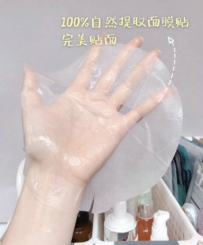 面膜是果冻感膜布,服帖度贼好;含有5种透明质酸,水水的,每次敷完脸就像海绵吸饱了水般~