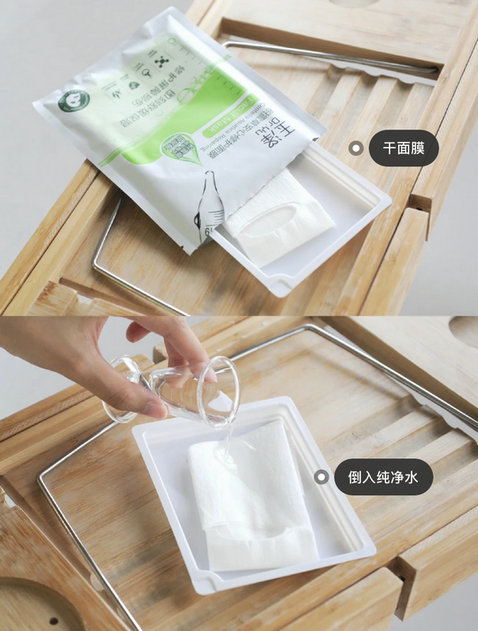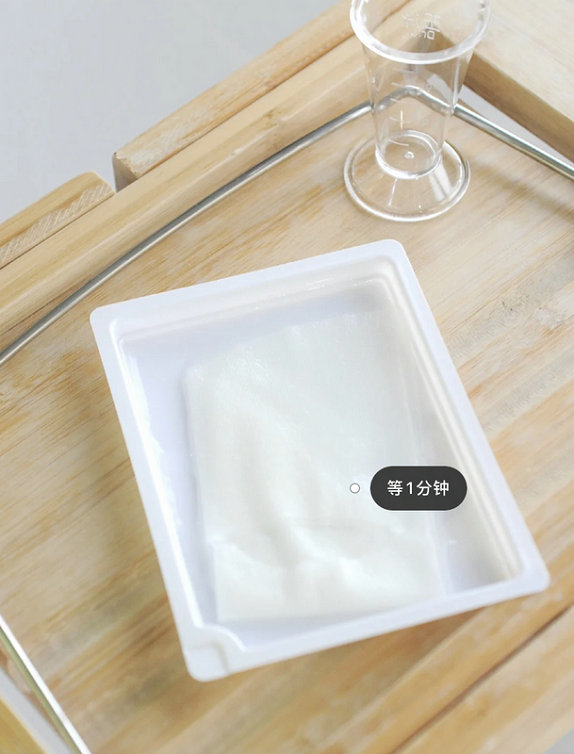 刚拿回家,我就觉得怎么轻飘飘了,打开一看,原来它是干面膜。自己倒入20ml纯净水,等1分钟,就会变成沾满精华液的湿面膜了!至于倒什么水,很简单,直接倒矿泉水就可以~