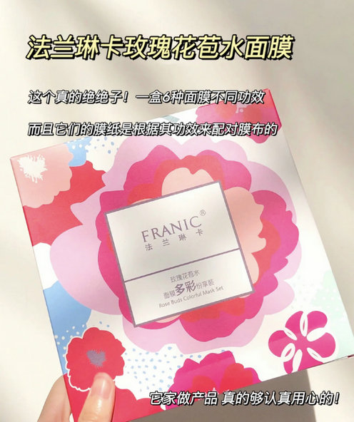 这宝藏面膜我发现有点晚了叭,之前买他们家很火的芦荟胶时,就随手入了一盒试试法兰琳卡家的玫瑰花苞水面膜现在我又又又回购了,一盒顶六盒超满足。