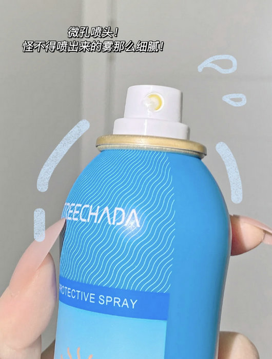 每次出门我都要带在身边,随时随地可以喷,夏天没它不行,非常推荐入手,朋友已经入手了,很好用,想要防晒喷雾的姐妹,推荐试试一这个reechada防晒喷雾。