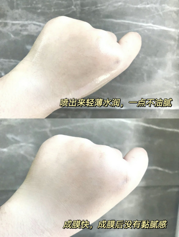 这款喷雾喷出来很细腻,很好推开成膜也快,蛮清爽,喷上没有厚重感,spf50+ 防晒力度也很可,爱了,就算夏天也杠杠的,使用方便很不错。