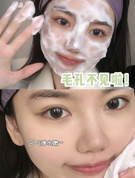 挤出来是乳霜质地,加水打圈,很细腻的小泡沫,如果喜欢丰富大泡沫的话,可以用起泡网,我比较懒,一般都是手搓起泡然后往脸上按摩。