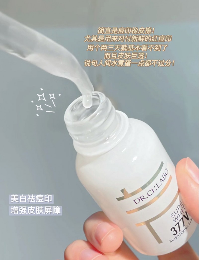 今年我立了flag!必须摆脱痘印!尝试了好多美白淡斑类的护肤品,感觉还是最近种草的这瓶城野医生377闪光瓶更适合我,它也是城野医生家今年的新品哦!