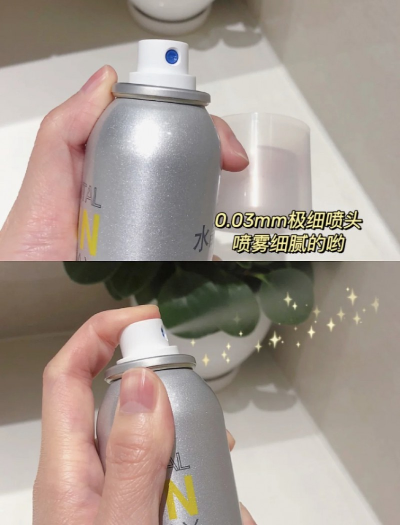 可以看到喷雾的质地透明无色,喷出来是很细密的雾状,成膜非常快,不泛白不浮油也不拔干,非常的清爽轻薄。油皮的妹子也可以放心使用,让你夏天摆脱油腻感,还不用担心闷痘等问题,平时出门可以用来定妆,效果也是棒棒哒!