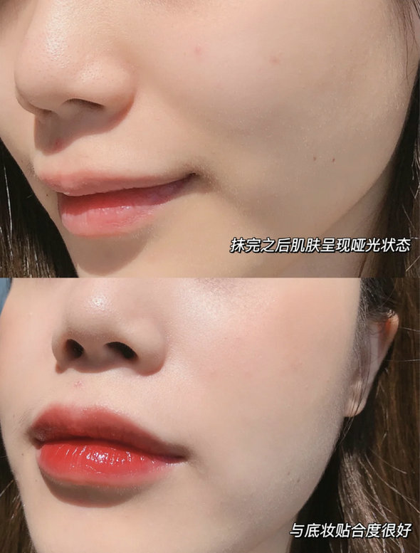 而且防水防汗,用水去淋过,水是一股流下来,肤色不会出现一道深一道浅的样子,不会太尴尬,控油效果也不错,效果挺好,大家都要做一个全方位的美白少女,啊哈哈。