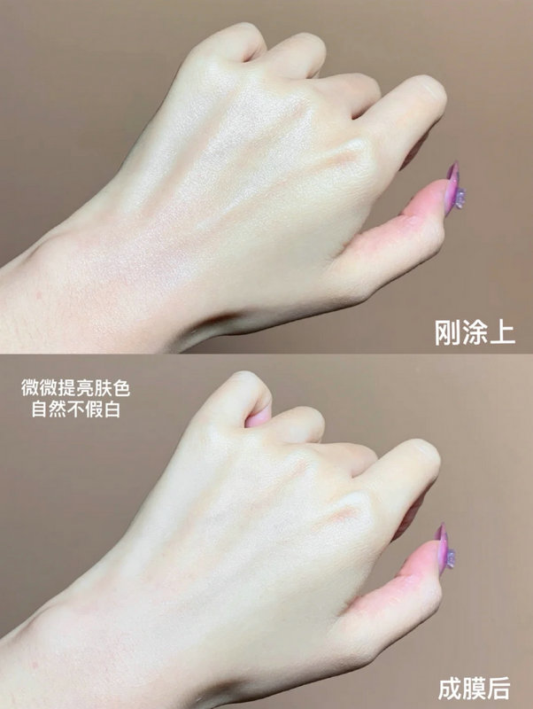它质地水润不黏腻,成膜也非常快。成膜快的防晒霜防护效果也会更好更全面!成膜后后续上妆也丝毫不影响妆效,而且我干皮其实很怕上脸太多层护肤品和化妆品会卡粉搓泥的。用这个一点也不会!