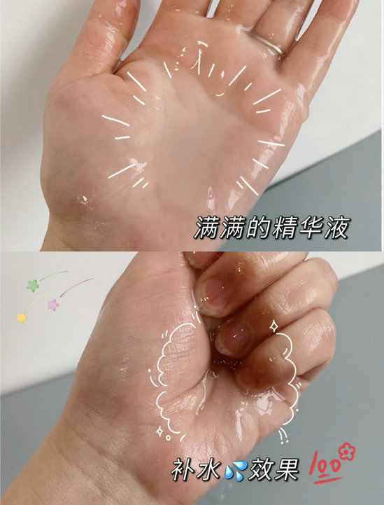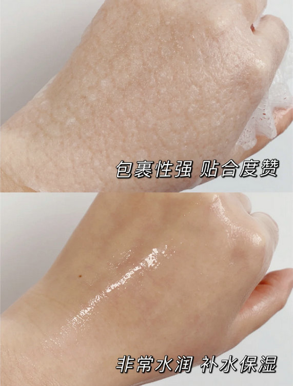 它的膜布大小裁剪的很好,贴在脸上很服帖,贴的时候也不会往下面掉精华,这款面膜我一般都是敷15分钟之后,面膜取下来之后还可以挤出点精华,敷任何面膜都是需要洗的,洗完之后皮肤就像喝饱了水一样,非常水润,就像洗完后不及时涂水乳,也不会觉得干,保湿效果还挺不错的。