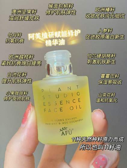阿芙11籽精华油真的很绝!市面上的油一般只包含一两种油成分所以功效多偏单一修复或单一补水保湿11籽精华油成分就很全,营养成分足足有11种,山茶花油抗老抗氧化+猴面包树油恢复肌肤弹性欧洲臻籽油淡化细纹,一瓶全能修复补水抗老都搞定了!100%纯天然植物萃取,没有致敏致痘的危险,而且它的油分子很小,是润而不油的质地,比大部分精华水乳还好吸收,按摩完脸部炒鸡细腻透亮是那种白里透红的感觉。