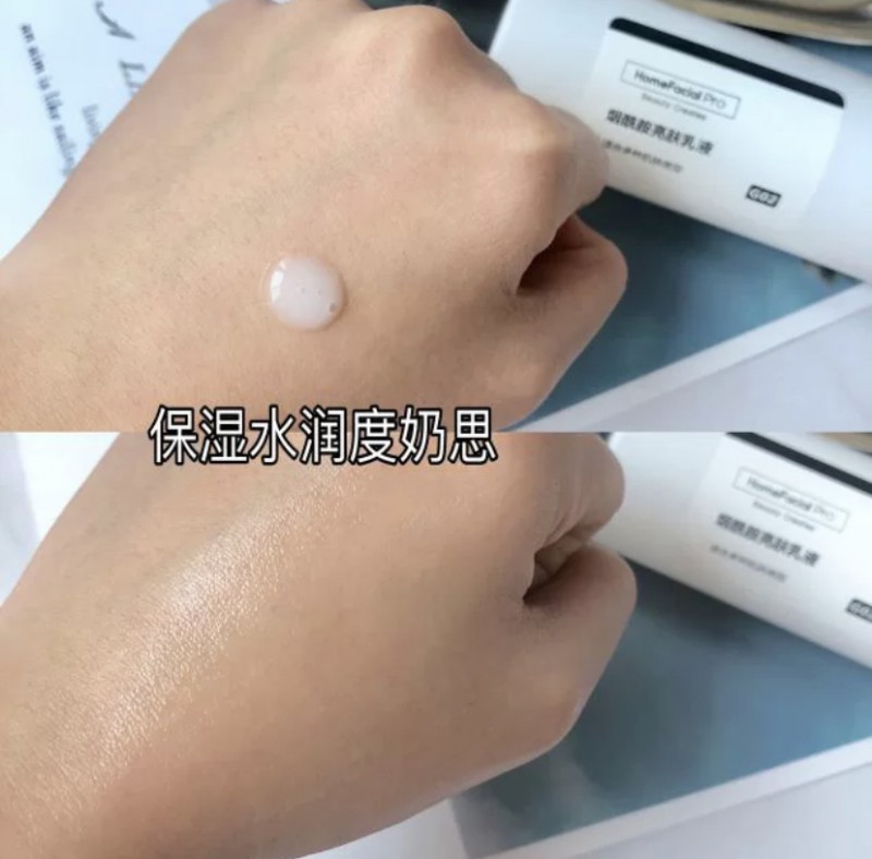 质地也很轻薄,易推开吸收的也很快,觉得很适合夏日使用了,一点也不油腻!用了一个月真的感觉脸部有明显的提亮了!