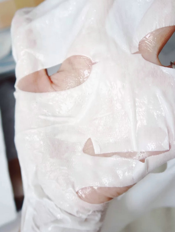 值得一提的是,每片面膜都有两层衬布,被两片纱布像三明治一样夹在中间那薄薄一层才是面膜本人哦!使用的时候先揭下一层,在脸上贴好位置,再揭第二层就好啦!