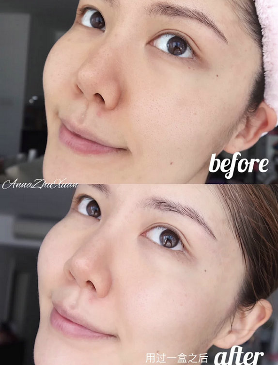 因为真的超薄,所以鼻翼眼周的地方也很服帖不会翘起来,我觉得我的脸已经和面膜合二为一了,揭下来的时候,感觉皮肤也像牛奶一样又白又滑对比图可以看出敷完后皮肤真的变亮了不少。