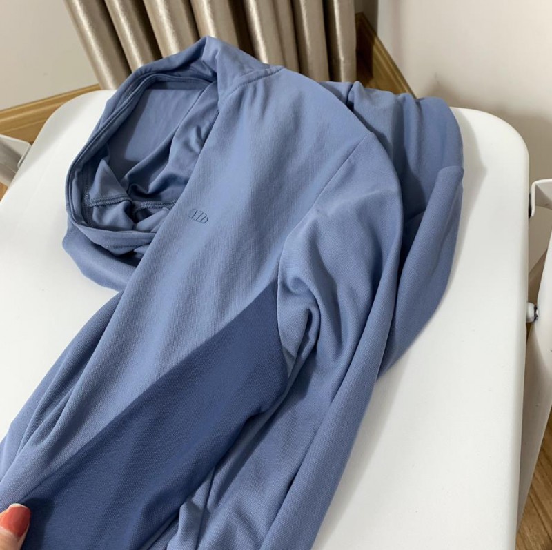 衣服的触感和冰袖一样,流了汗后干得很快,冰冰凉凉地贴在身上像自带了一台散热机。袖子能盖住手背、拉链也能拉到鼻孔下方,面部上贴心的透气孔设计仿佛在说:你就放心捂吧,不会死。