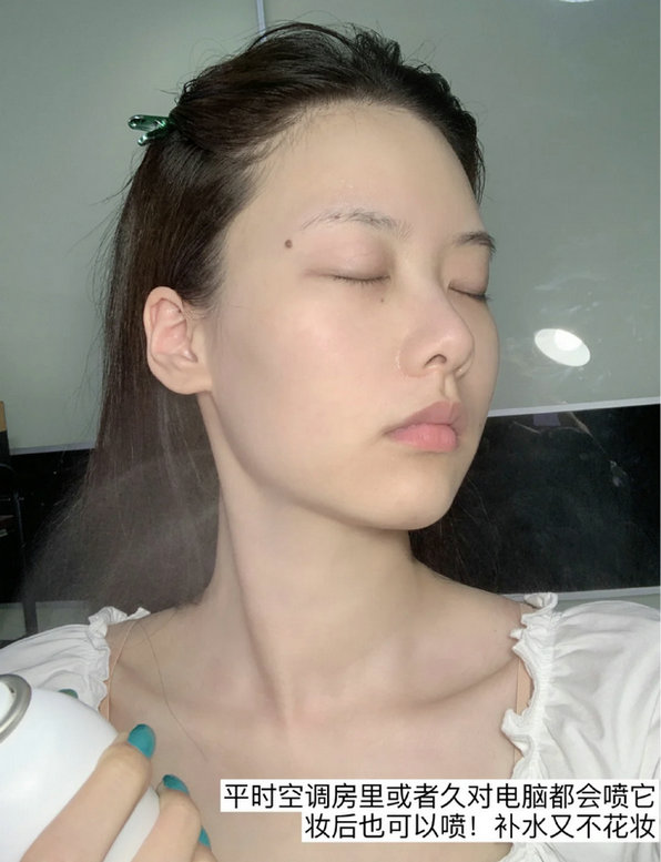 平时都用喷雾来补水的,喷出的水细腻,喷在脸上补水效果也强呢,而且这样吸收也快。里面成分安全,含有洋甘菊精华成分,对皮肤也有一定的养护作用。