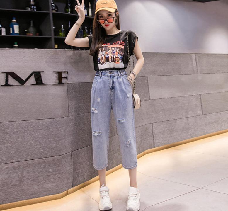 而九分裤则应根据裤子的材质来进行搭配,棉麻的九分休闲裤,搭配宽松的棉麻衬衫就是一枚文艺青年。还可以将裤脚卷起部分,一股轻松慵懒的感觉就出来了。宽松的BF风的牛仔裤,搭配宽松的T恤或者紧身吊带,又性感又帅气。紧身的九分牛仔裤则非常修饰腿型,搭配一件短款的上衣就可以一秒变身大长腿。夏天不止连衣裙一种选择,多给自己一个选择,可以发现不一样的自己。