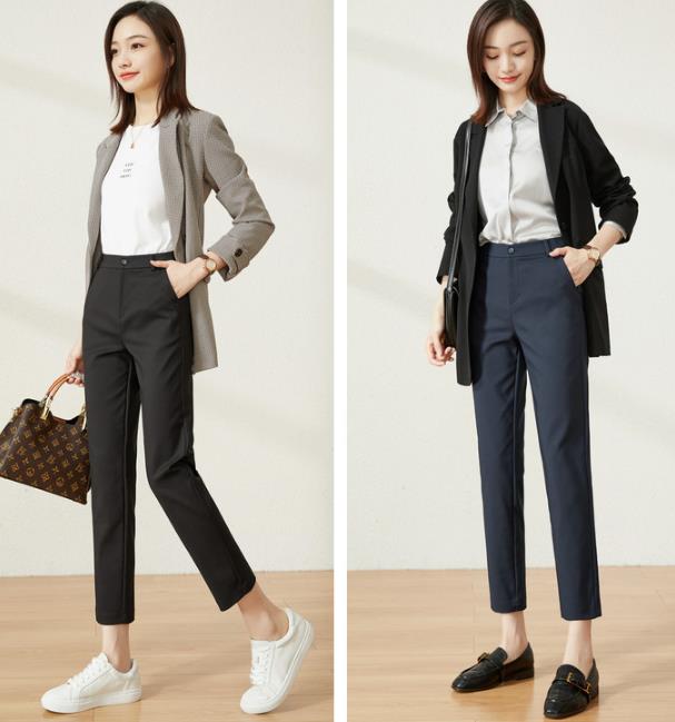 九分裤则是可以露出女性纤细的脚踝,相对于保守的长裤来说更加清爽时尚。