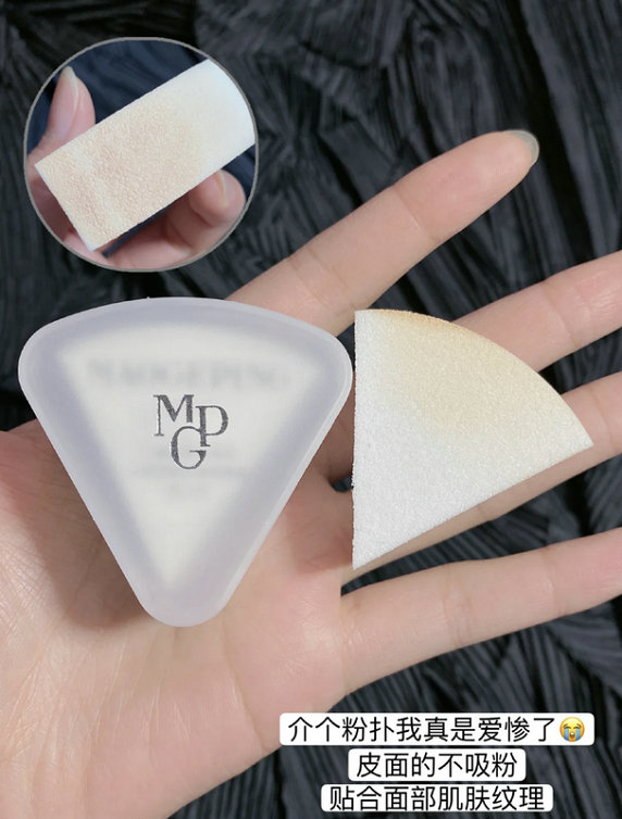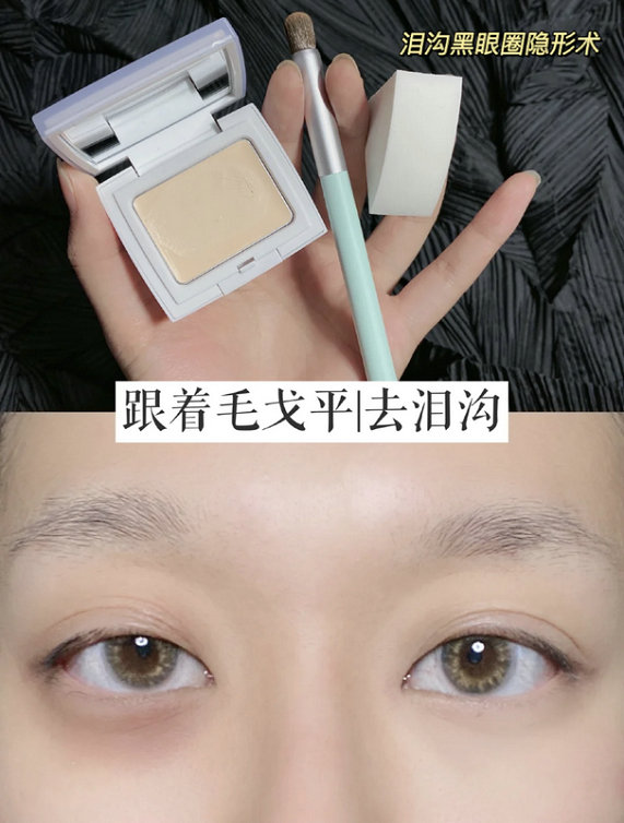 用三角粉扑的弧面去上妆而不是用尖头,为了让妆容更自然试试在粉底前上粉膏会比粉底后更自然。黑眼圈跟我一样不是很严重的,可以使试试。如果黑眼圈比较深建议用调色遮瑕膏+高光粉膏来搭配遮盖效果会更好一些!