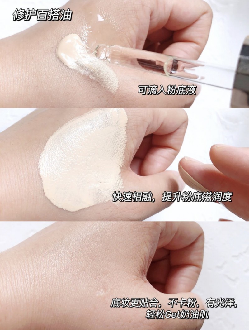 因为我皮肤长痘所以一开始就担心会太油腻,但是上手试过之后觉得真的要比想象中的要水润的多。而且修护能力很强,像我起皮爆痘的情况在几天之后就能得到很快的解决,再化妆也不会卡粉卡纹了,皮肤的闭口也都平滑了(在上底妆的时候也可以滴几滴在粉底液里,会更加滋润)