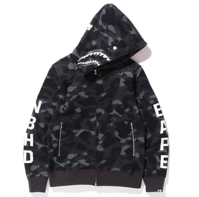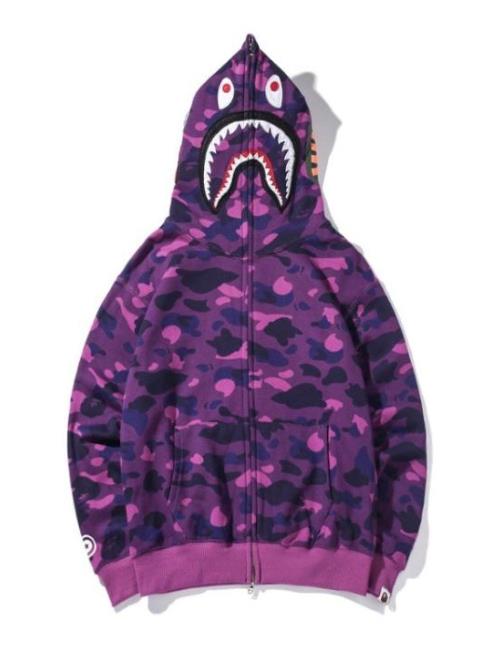 鲨鱼外套是BAPE这个品牌,中文名字叫做猿人头、安逸猿等等。BAPE是日本非常受欢迎和有名的时尚潮流服装品牌,它的logo是一个猿人头,BAPE的意思就是安逸生活的猿人,代表这日本潮流文化的最高水平,在亚洲地区也比较有影响力。