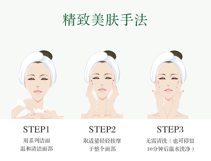 4. 停留10-15分钟即可,无需清洗,也可以温水洗净,每周建议使用2-3次。