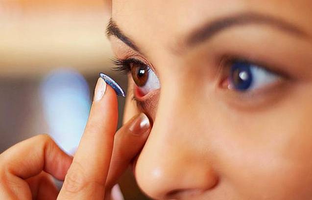 4.清洁双手,食指指尖轻轻拖住镜片,确定镜片正面朝上才能佩戴。摘除时避免用指甲接触镜片。