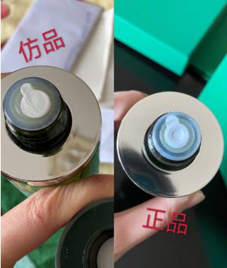 图四是瓶口的锁封,白色塑封很容易撕开,仿的撕开胶很多。还有好多都封不紧,洒漏了很多液出来。中间也是凸起的而仿品是平的,对了瓶口中间处也有数字(有想看清晰照片或者视频的仙女可以私信我)