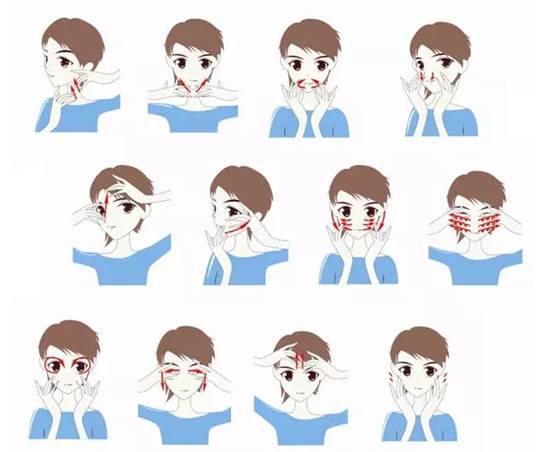 (1)开穴:面部所有穴位,从上到下,或者从下到上,每个穴位点按三次。
