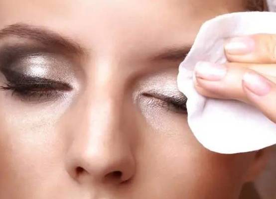 卸妆步骤三:滴一点卸妆产品到化妆棉上,然后闭上双眼,由眼头向眼尾方向慢慢抹去,抹下眼线位置时双眼向上望。尽量避免过度拉伸眼部肌肤产生细纹。
