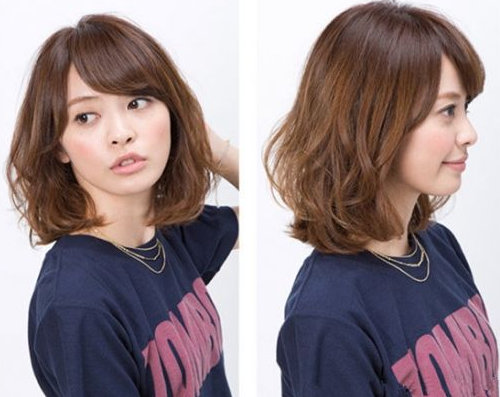 国字脸的女生看起来有很严肃的感觉,所以说我们先利用一个斜刘海来修饰额头,然后头发底端有层次的剪出一个短发发型。刘海和头发的造型建议大家都做的凌乱一些,让头发蓬松起来,会让国字脸看起来柔和感一些。